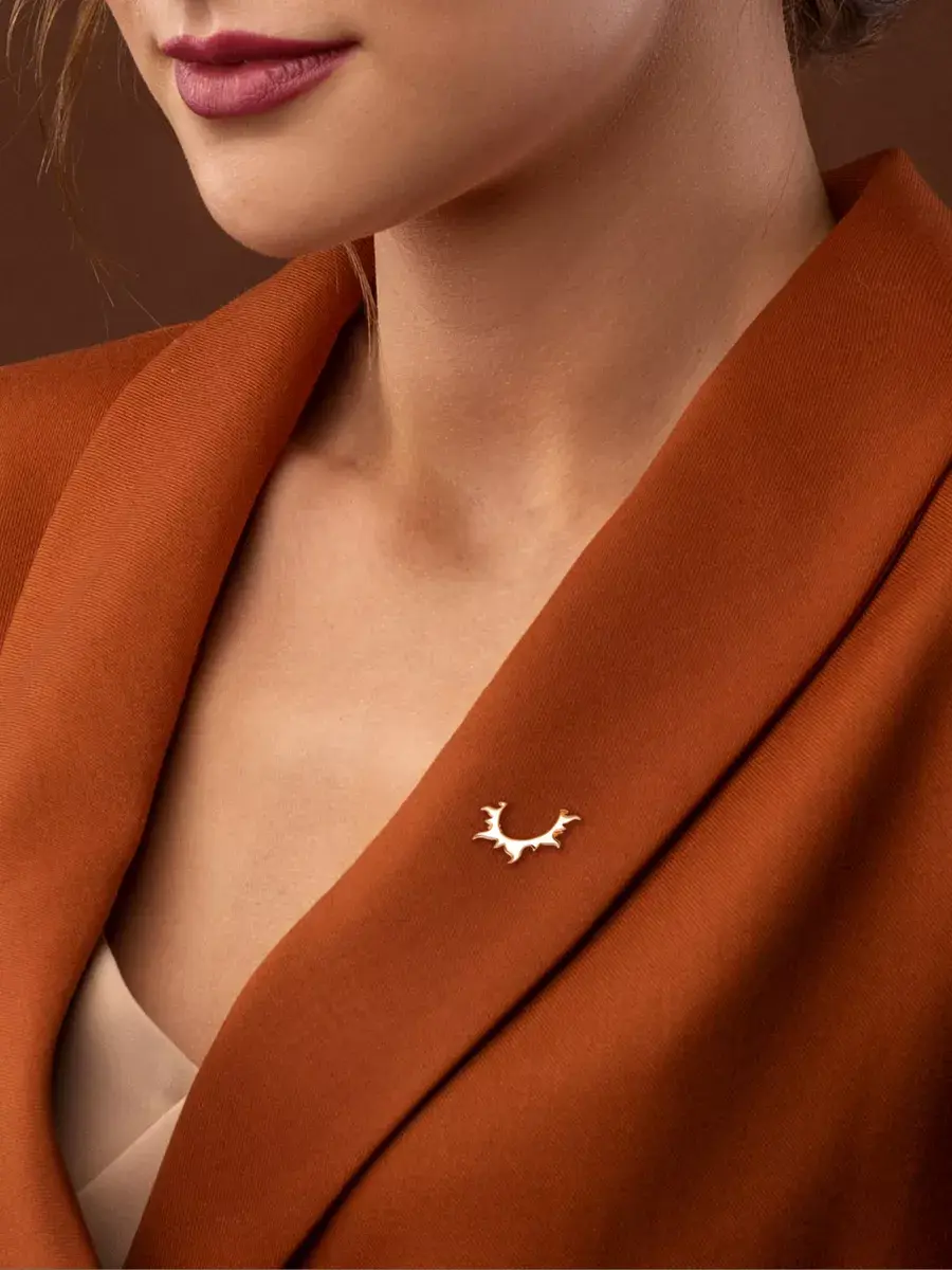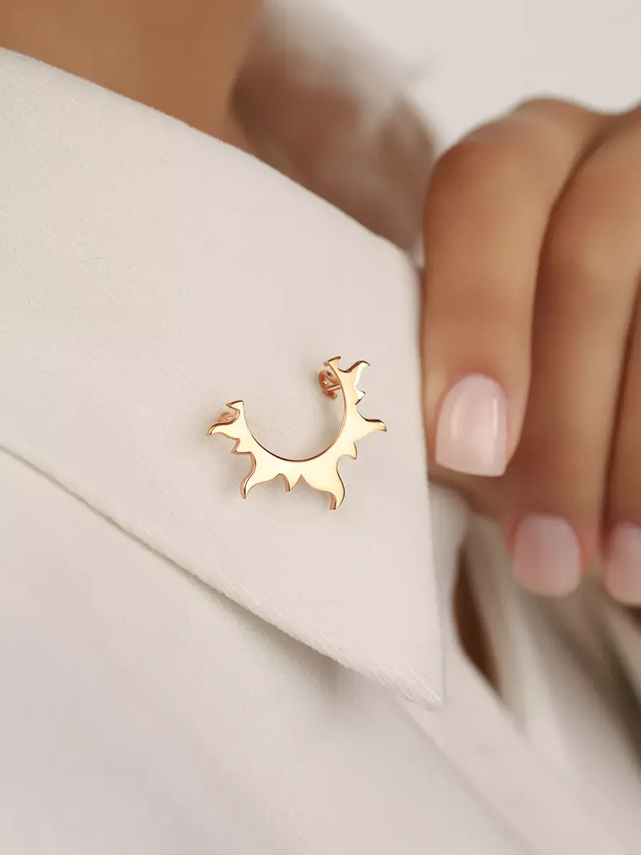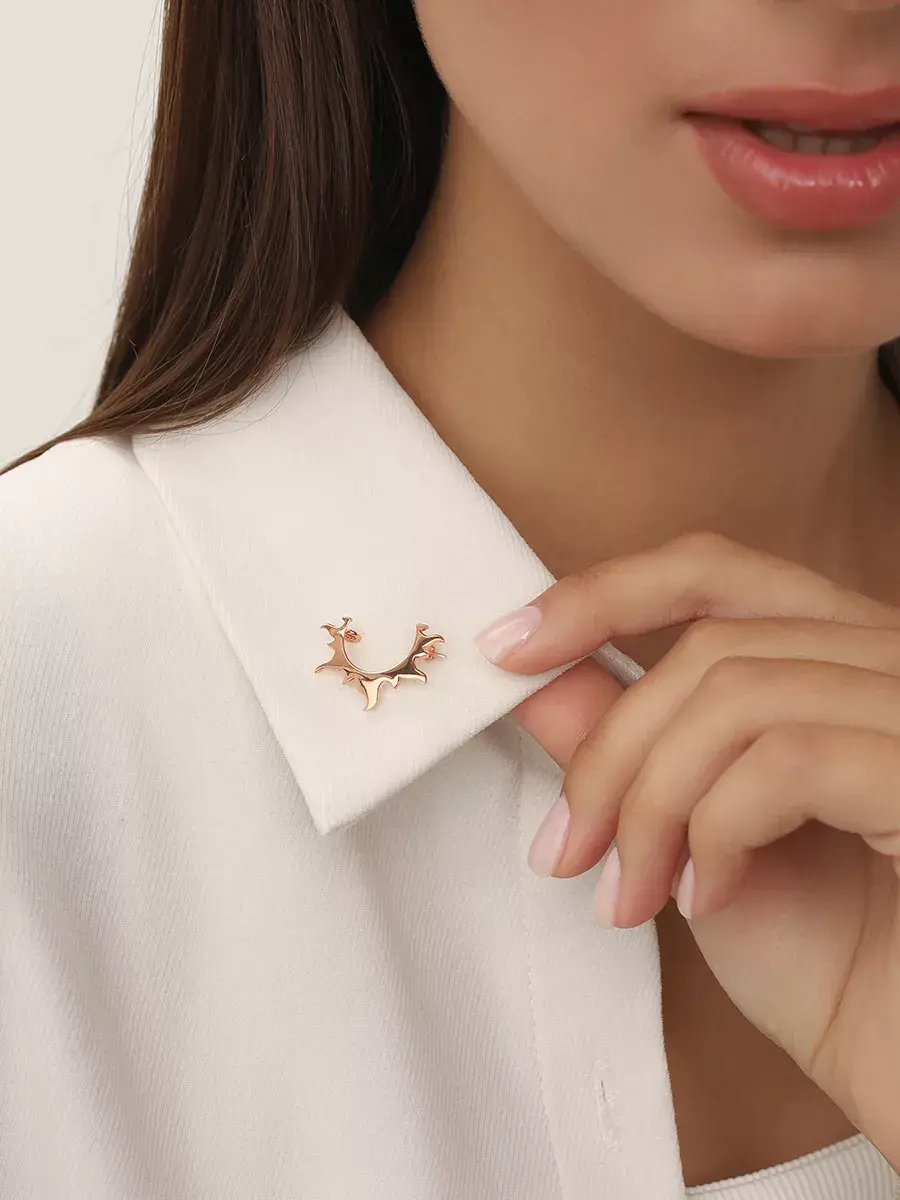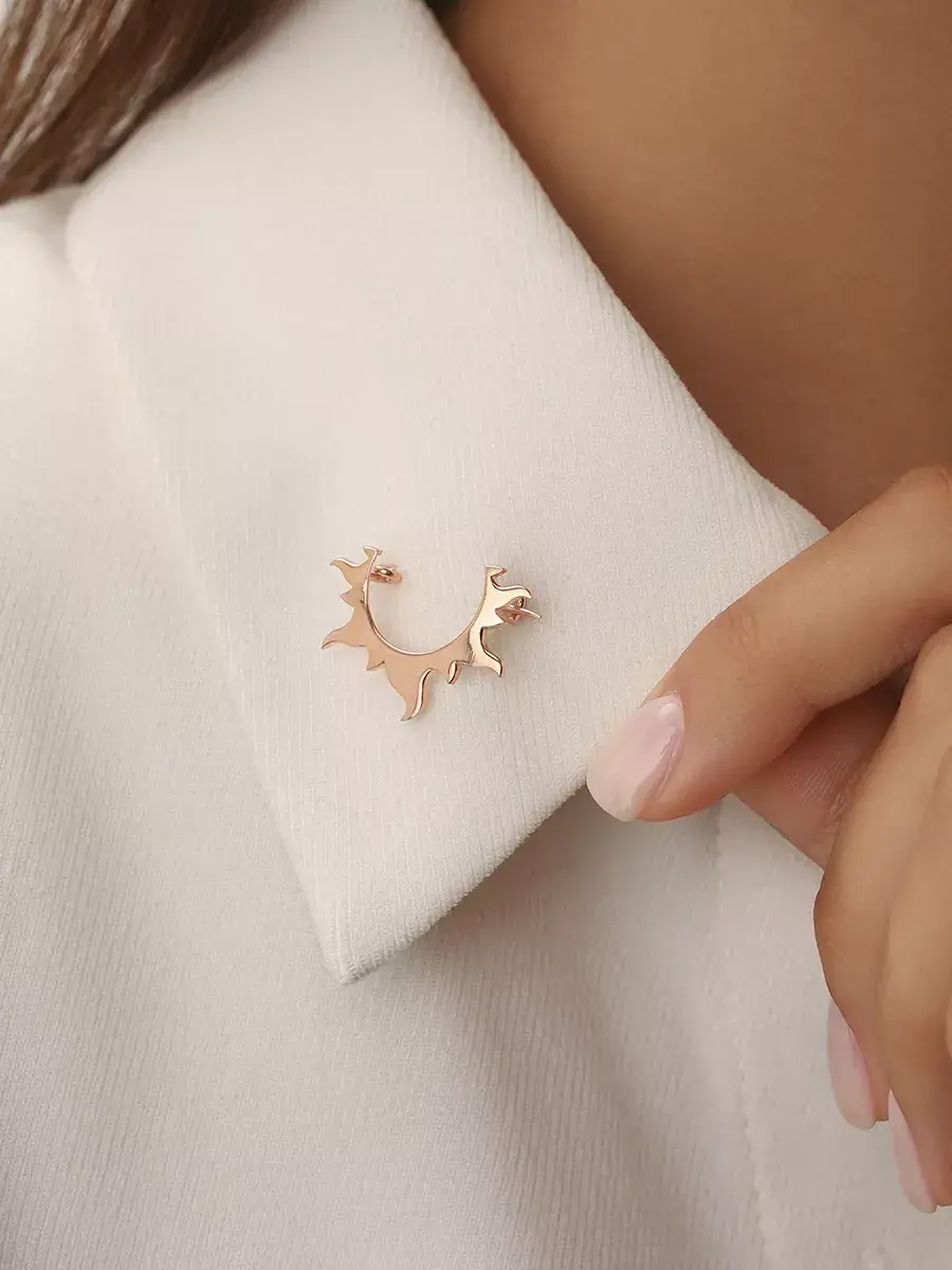 Надевая брошку в форме Солнца, вы акцентируете внимание на себе, на собственной самопрезентации. Создаете образ женщины, которой важна карьера, активность, лидерство. При этом лаконичный дизайн украшения в стиле минимализм делает его универсальным для любой ситуации и образа.