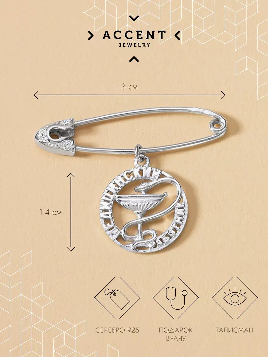 Серебряная булавка в виде книги из 925 пробы, отличный подарок на день медицинского работника, или просто в подарок врачу. Ювелирное изделие брошь из серебра покрыто высококачественным родированным защитным слоем. Это украшение не потемнеет, не потускнеет, и надолго сохранит свой первоначальный блеск при правильном уходе.