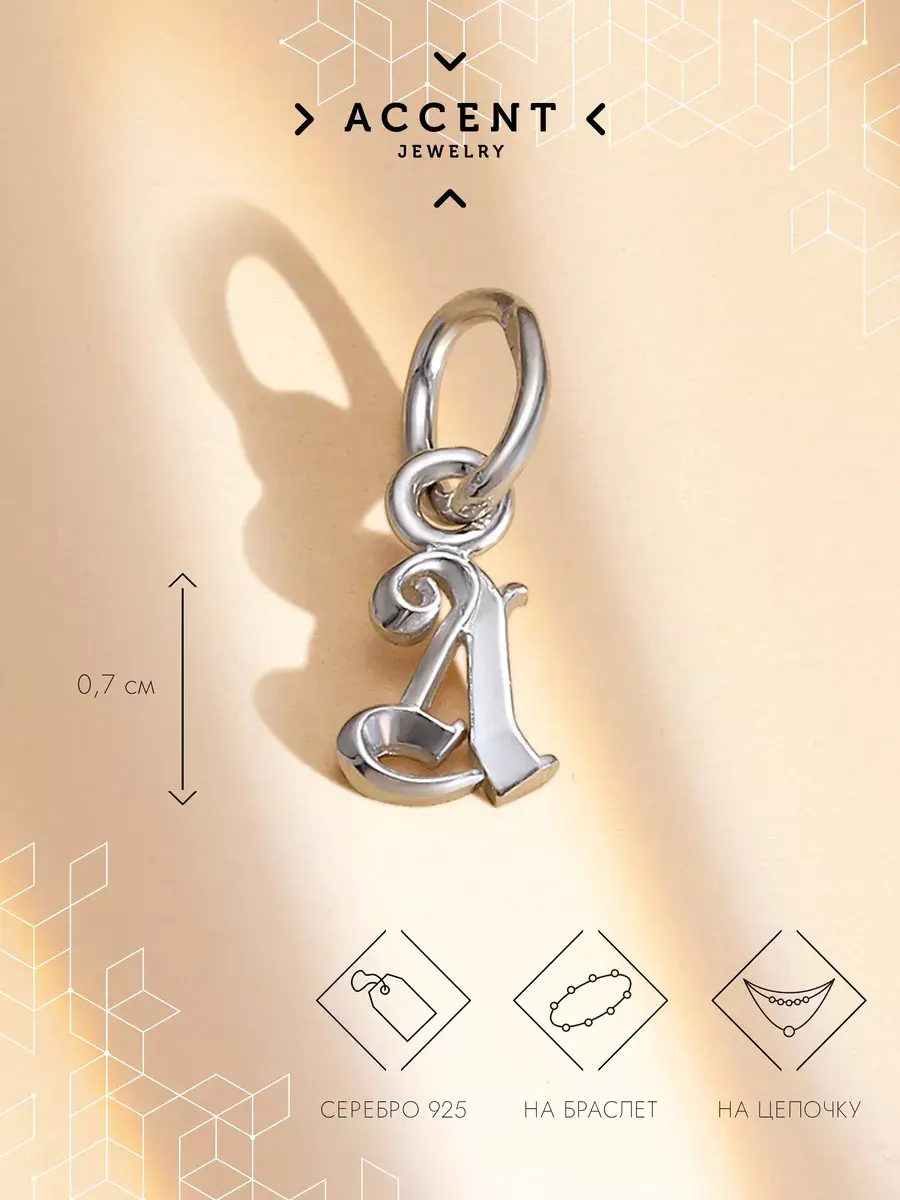 Ювелирная подвеска из серебра с буквой Л подходит как для браслета, так и для цепочки.