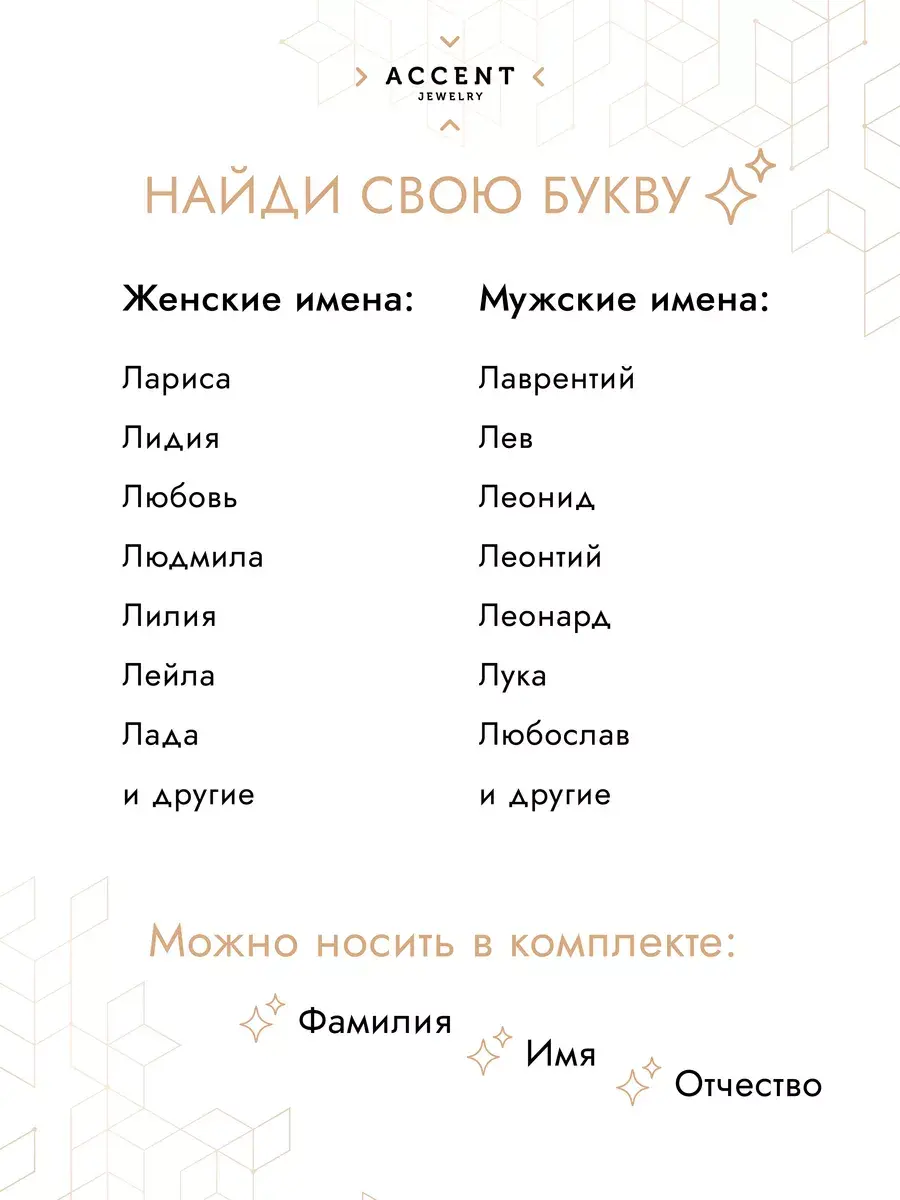 Например, как женская подвеска для Лены, Лизы, Лиды, Любови, Людмилы и так далее.