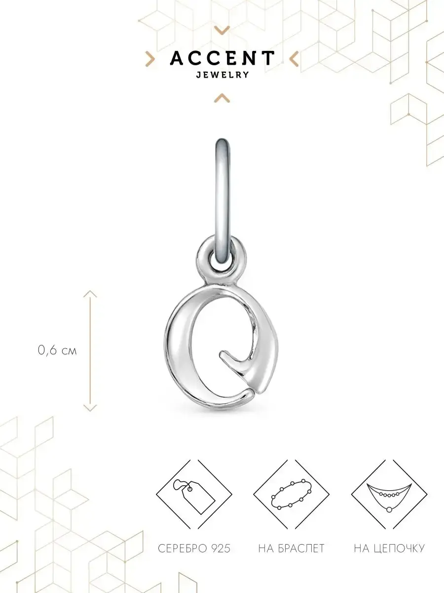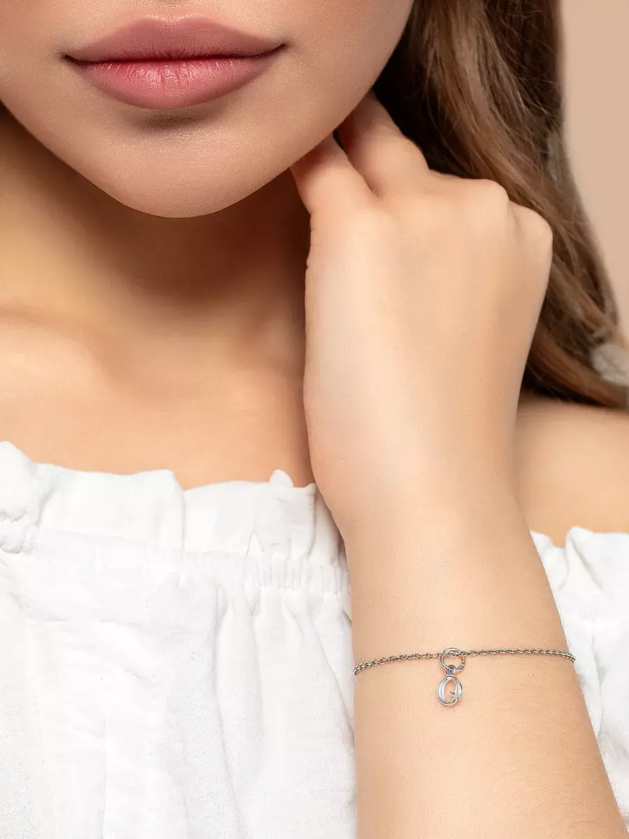 Ювелирная подвеска из серебра с буквой О подходит как для браслета, так и для цепочки.