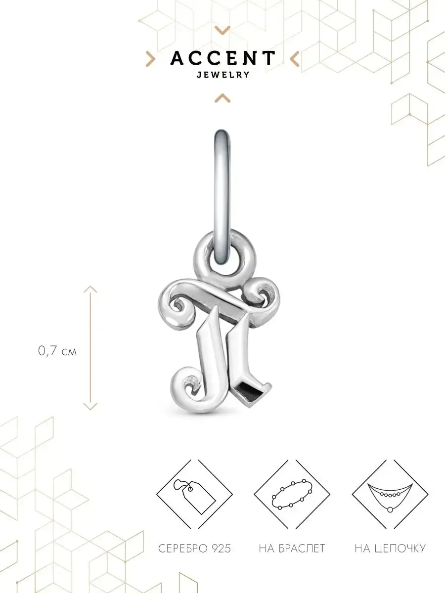 Ювелирная подвеска из серебра с буквой П подходит как для браслета, так и для цепочки.