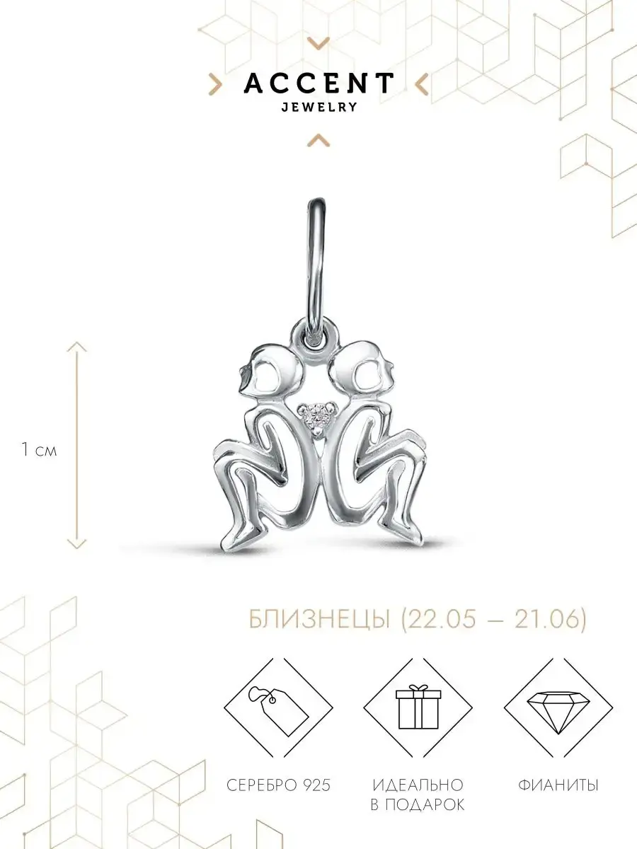 Кроме того, Серебряный кулон для подойдет дочери, мамы, жены и станет прекрасным подарком на любой праздник. Подвеска с изображением символа Близнец отличается неповторимостью и изысканным дизайном. Сияющее женское украшение привнесет в ваш образ загадочность и шарм.