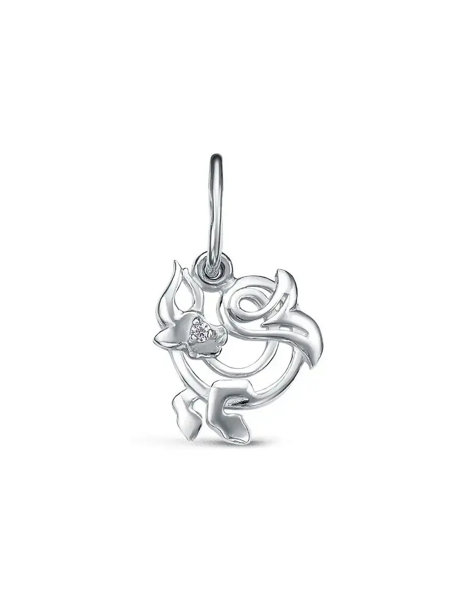 Подвеска из серебра 925 пробы, покрыта слоем родия, защищающим изделие от потемнения и позволяющим надолго сохранить первоначальный вид изделия при бережном отношении. Диаметр подвески - 1,0 см. Подвеска украшена прозрачным фианитом. В коллекции Знаки Зодиака представлены 12 серебряных подвесок, изображающих символы.