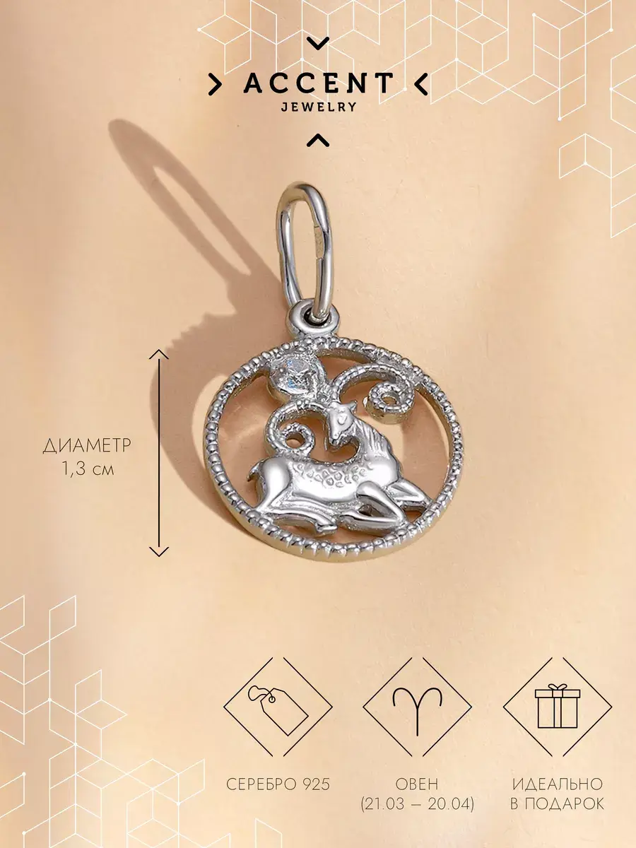 Уникальный кулон талисман из серебра — настоящее украшение для поклонниц зодиакальных символов. Ювелирная подвеска из 925 пробы серебра с персональным знаком является символом индивидуальности. Это элегантное украшение подчеркнет вашу принадлежность к знаку зодиака Овна.