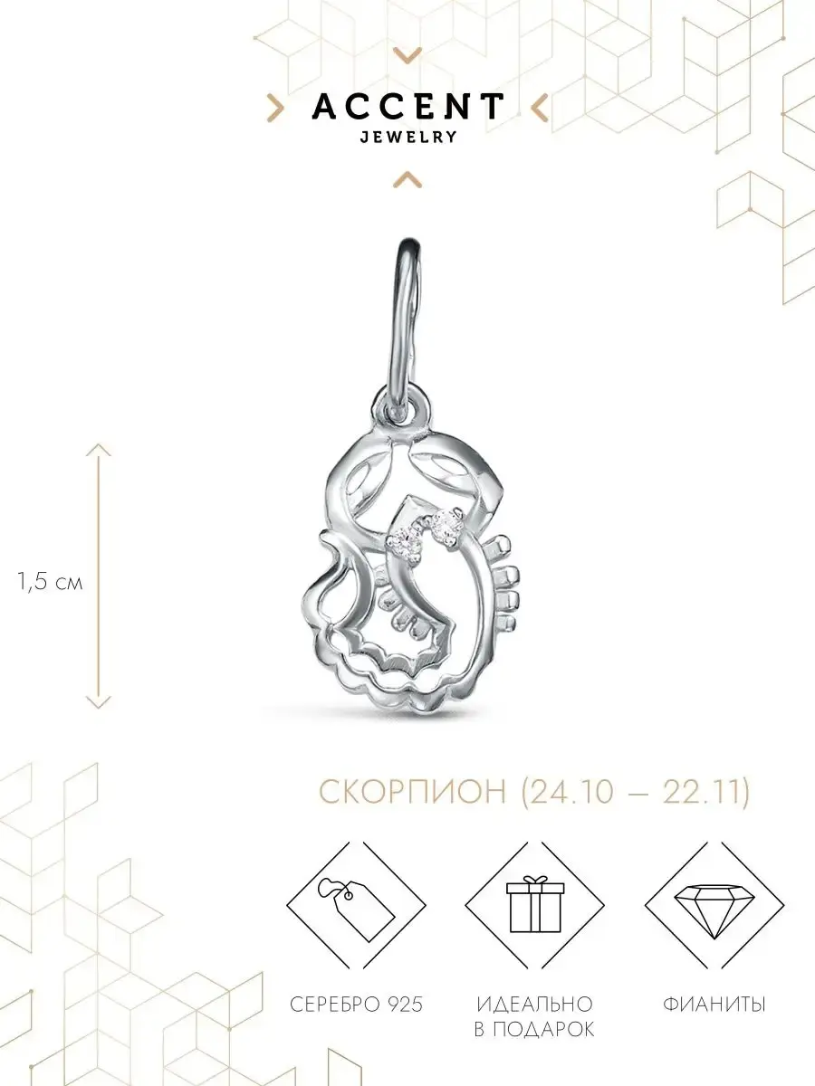 Кроме того, серебряный кулон подойдет для дочери, жены, мамы и станет прекрасным подарком на любой праздник. Подвеска с изображением символа Скорпион отличается неповторимостью и изысканным дизайном. Сияющее женское украшение привнесет в ваш образ загадочность и шарм.