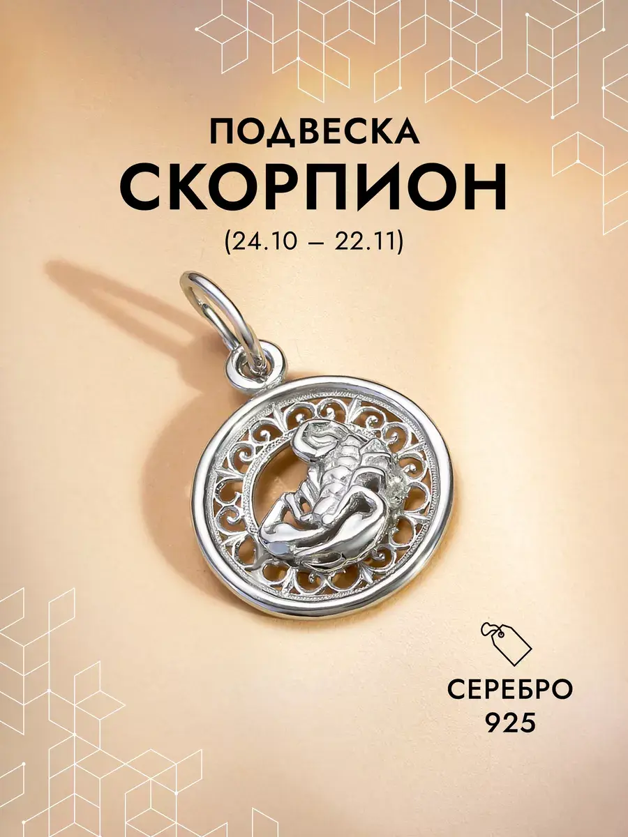 Женская подвеска знак зодиака Скорпион идеально дополнит ваш гардероб, придавая образу особую изюминку. Символика знаков зодиака всегда в тренде, поэтому это украшение талисман актуально на любом мероприятии или повседневной жизни.