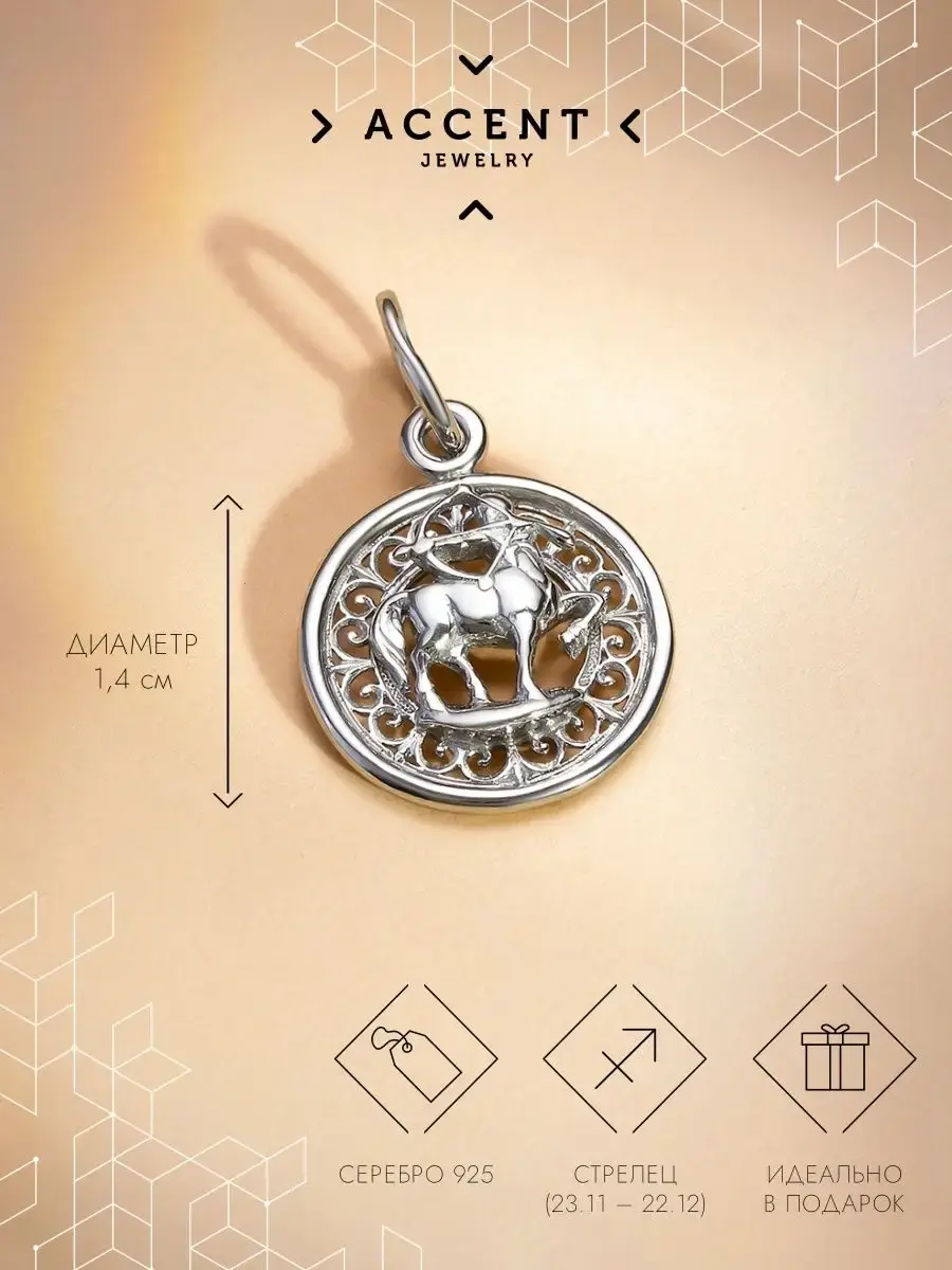Кроме того, серебряный кулон подойдет для дочери, жены, мамы и станет прекрасным подарком на любой праздник. Подвеска с изображением символа Стрелец отличается неповторимостью и изысканным дизайном. Сияющее женское украшение привнесет в ваш образ загадочность и шарм.