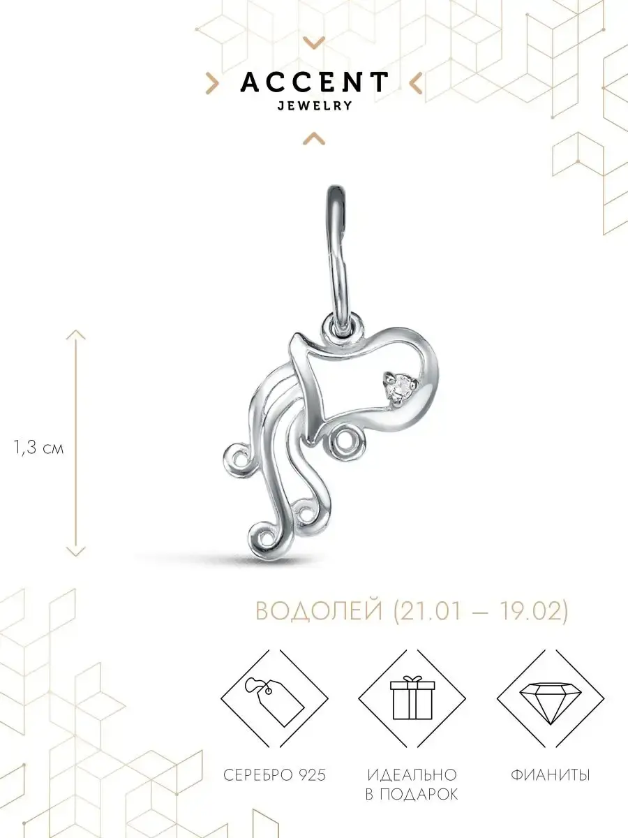 Кроме того, серебряный кулон подойдет для дочери, жены, мамы и станет прекрасным подарком на любой праздник. Подвеска с изображением символа Водолея отличается неповторимостью и изысканным дизайном. Сияющее женское украшение привнесет в ваш образ загадочность и шарм.