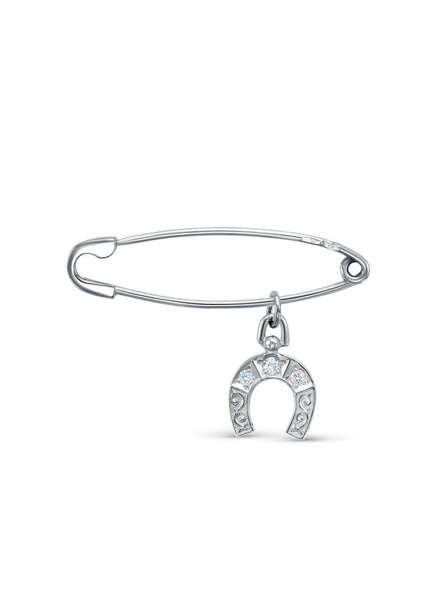 Серебряная булавка с подвеской Подкова