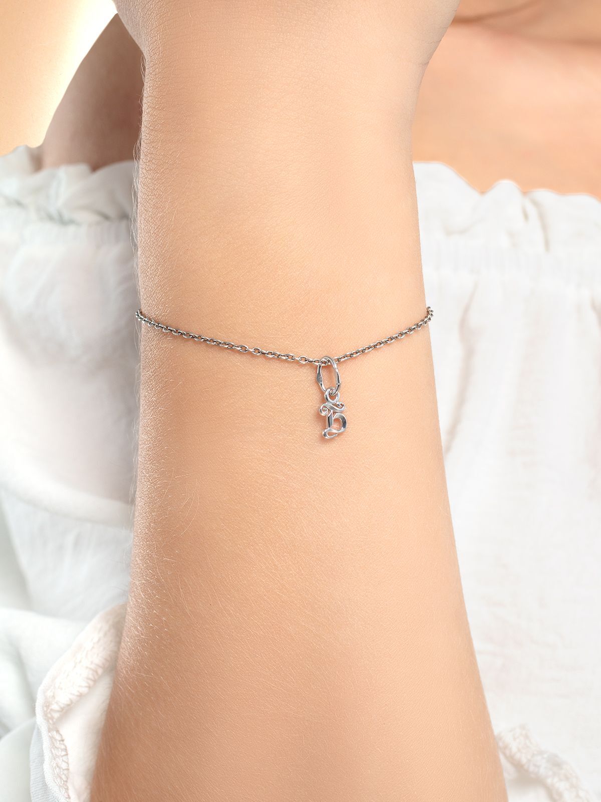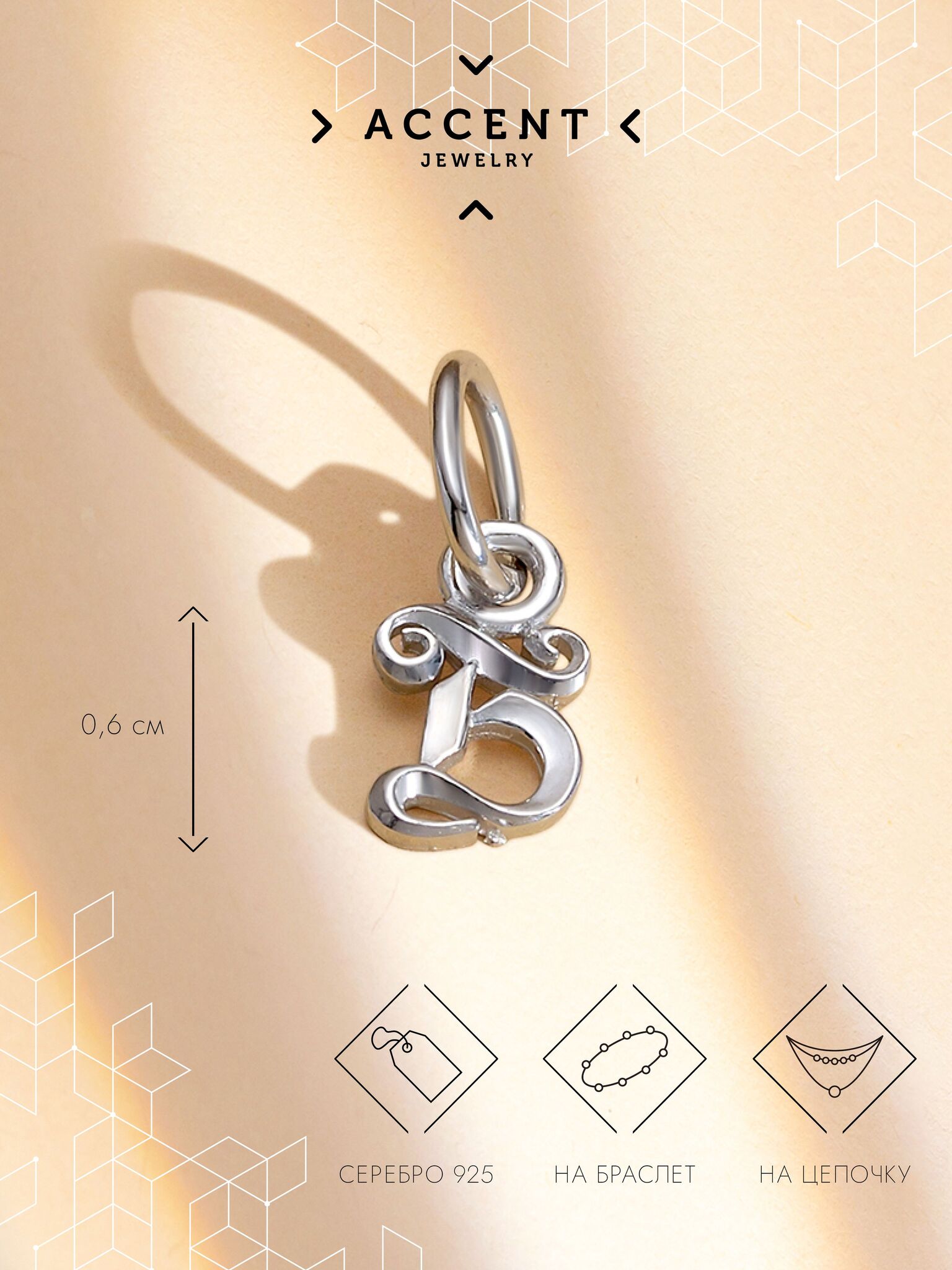 Ювелирная подвеска из серебра с буквой подходит как для браслета, так и для цепочки.