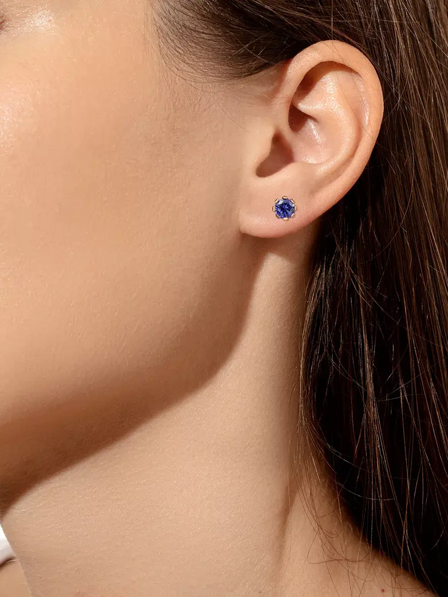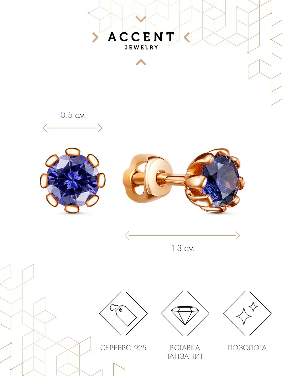 Позолоченные серьги пусеты из серебра 925 пробы, винтовые замки. Серебряные серьги с крупным натуральным камнем. Камень танзанит. Диаметр фианита 0,5 см. Серьги покрыты высококачественным защитным слоем позолоты. Это украшение не потемнеет, не пожелтеет и надолго сохранит свой первоначальный блеск, при должном уходе