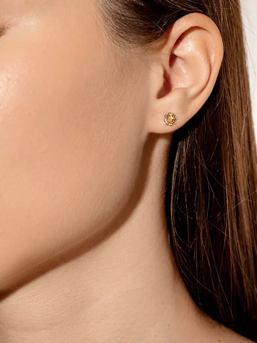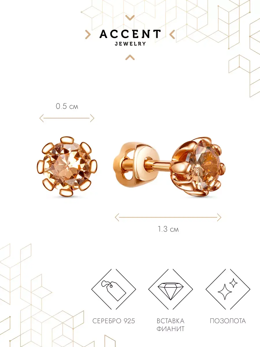 Позолоченные серьги пусеты из серебра 925 пробы, винтовые замки. Серебряные серьги с крупным золотым камнем. Диаметр фианита 0,5 см. Серьги покрыты высококачественным защитным слоем позолоты. Это украшение не потемнеет, не пожелтеет и надолго сохранит свой первоначальный блеск, при должном уходе.